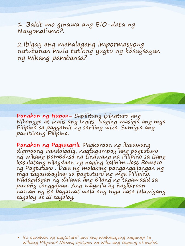1939-1959 pag-iwas sa baybay Espaol Pilipino. Tagalog bilang batayan ng wikang pambansa. Written by Resty Cena.