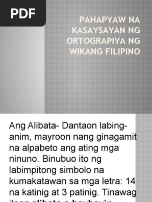 1987 28 titik Filipino. PAHAPYAW NA KASAYSAYAN NG ORTOGRAPIYA NG WIKANG FILIPINO. 2016-12-01 Mithiing Katangian ng Ortograpiyang Filipino.