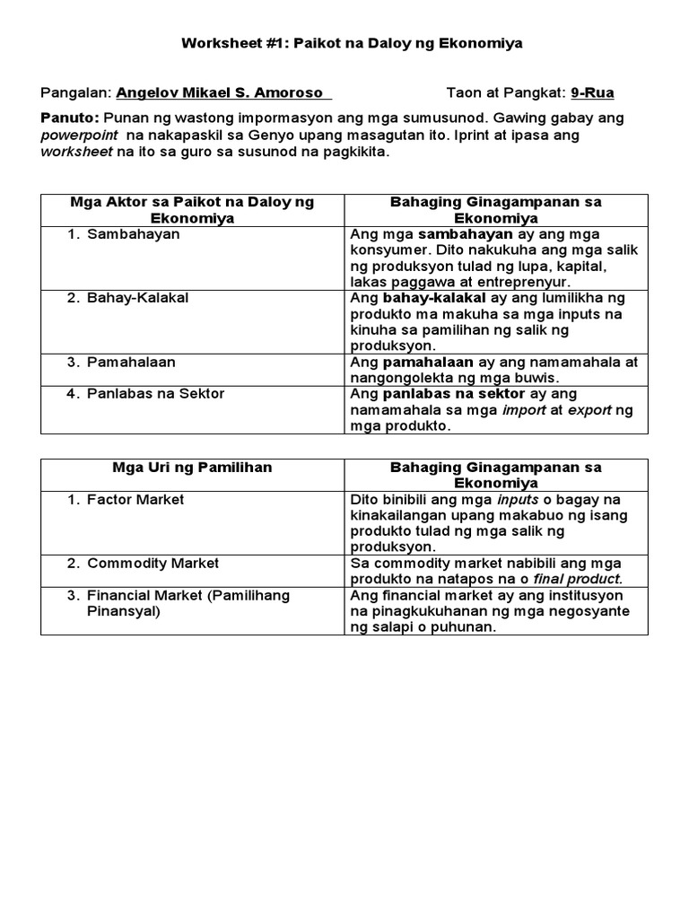 FILL IT RIGHT Ibigay ang bahaging ginagampanan ng mga aktor at pamilihan sa naikot na daloy ng ekonomiya. 08022017 Ginagamit ng mga samabahayan ang kanilang kita upang makabili ng produkto. 21112016 Bilang bahagi ng pag-aaral ng ekonomiya ang Factor Market ay tumutukoy sa merkadong nagpapaikot ng isang negosyo.