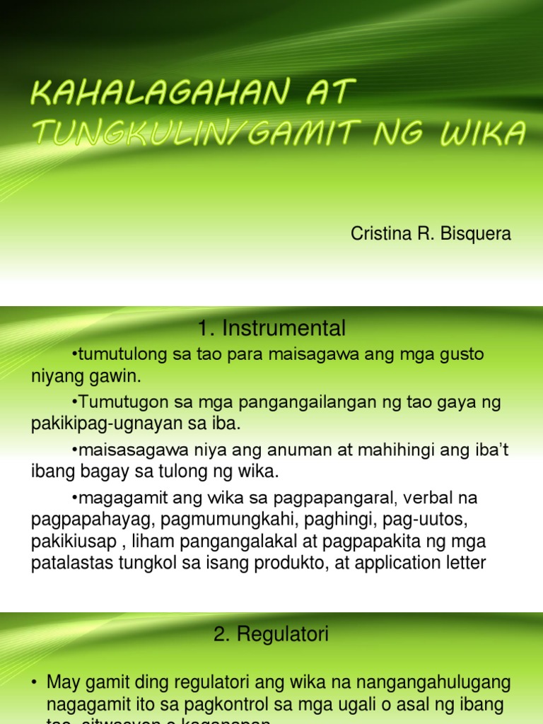 Regulatori na gamit ng wika halimbawa. Sunod na gamit ng wika ay ang Regulatori. Isa na sa mga halimbawa ang pagbibigay ng dereskyon minsan diy mga paalala at babala. Instrumental Regulatori at Heuristikong Tungkulin ng Wika Instrumental na Tungkulin ng Wika Kung layon nitong makipagtalastasan para tumugon sa pangangailangan ng tagapagsalita.