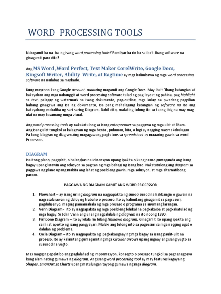 Word Processing Tool Na Ginagamit Upang Makagawa Ng Isang Diagram O Plano A Course Hero