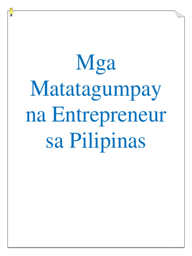Entrep 5 matagumpay na entrepreneur sa ating bansa slideshare uses cookies to improve functionality and performance and to provide you with relevant advertising. Siyay nagsimula sa capital na 1000 pesos na gagamitin sa pagpapatayo ng isang maliit na negosyong pangtransaksyon na kinalaunan ay lumaki at naging isang malawakang proyektong pabahay. Kilala ba ninyo ang mga nasa larawan.